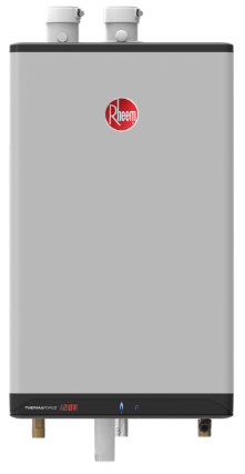 Rheem ThermaForce Super High Efficiency Condensing Tankless Water Heaters provide energy efficiency and high performance in a compact European design. Plus, they’re made to stand up to extreme hard water applications6—so you can count on having continuous hot water when you need it.